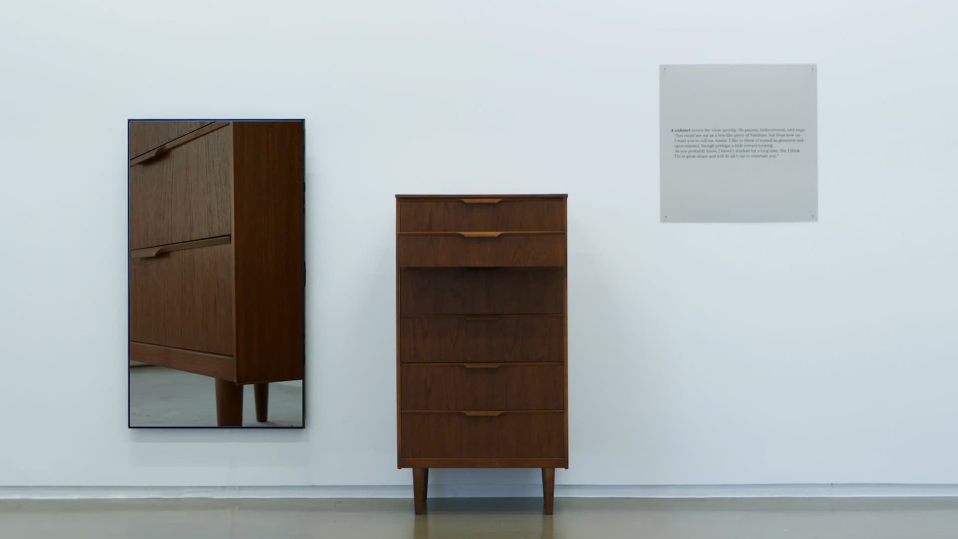 MacGuffin Magazine presents the installation One and Three Cabinet by Alexandre Humbert. With this collaboration, Humbert, the founder of Object Interview, gives a tribute to Joseph Kosuth’s 1965 iconic work One and Three Chairs, exploring the Object Interview-process and relating it to the layered construction of the magazine. The object’s representations, in this case, a cabinet, a film of this cabinet and a fictional story told by the cabinet are combined to create new object narratives.
